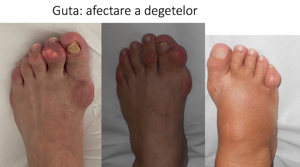 • artropatia micro-cristalina ("guta") afecteaza predominant articulatia metatarso-haluciana ("articulatia degetului mare");
